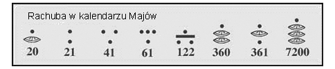 Pierwszy przykład: jest datą wyrytą na kamiennej płycie w mieście Tikal. Można to napisać jako: