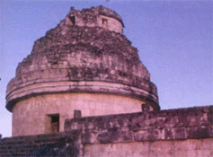 Majowie mieli sporą wiedzę o obrotach i cyklach astronomicznych ciał niebieskich, a w szczególności Słońca, Księżyca i Wenus. Wykonywali pomiary astronomiczne ze zdumiewającą dokładnością, za pomocą patyków stanowiących ich przyrządy pomiarowe. Stosowali dwa patyki ułożone w kształcie krzyża, pod odpowiednim kątem, do obserwacji obiektów astronomicznych. Budynek Caracaol w Chichen Itza był obserwatorium astronomicznym. Wiele okien w tym budynku jest tak umiejscowionych, że pozwalały na obserwację określonych zjawisk na niebie, jak np. zachodzące słońce w czasie równonocy wiosennej. |