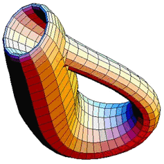 Obiekt na lewo stanowi obraz powierzchni, zwanej butelką Kleina.