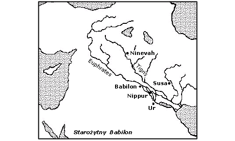 Mapa regionu, gdzie rozkwitała Babilońska cywilizacja