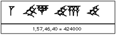 Tak wygląda liczba 1,57,46,40 w babilońskim systemie liczbowym