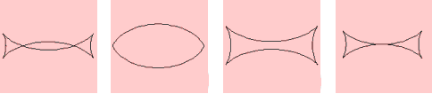 to w zależności od wartości a otrzymujemy następujące postacie krzywej: |