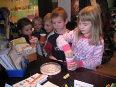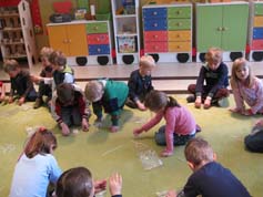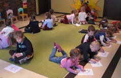 22 listopada 2009 w księgarni Pociąg do bajeczki odbyło się pierwsze spotkanie z przedszkolakami, które przekonało nas, że taka forma uczenia się, rzeczywiście bardzo podoba się dzieciom, które liczyły litery w swoich imionach, mierzyły stopami długość sznurka, rysowały figury geometryczne. |
