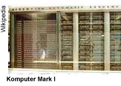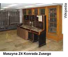 | w ten właśnie sposób przechowywał swoje programy i dane. Maszyna Z3 nie przetrwała wojny, została zniszczona podczas alianckiego bombardowania w 1944 roku (po wojnie ją zrekonstruowano). Ocalał jednak późniejszy model Z4, który został ukryty w jaskini w Alpach Bawarskich. Po wojnie zakupił go jeden z banków Zurychu, gdzie działał bezbłędnie przez kilka lat jako jedyny w tym czasie komputer na kontynencie europejskim. Obecnie znajduje się on w muzeum techniki w Monachium. Mniej więcej w tym samym czasie w Stanach Zjednoczonych, w 1944 roku, uruchomiona została pierwsza uniwersalna automatyczna maszyna cyfrowa o nazwie Mark I. Jej konstruktorem był fizyk amerykański Howard Aiken. |