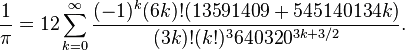 Algorytm jest oparty o następujący szybkozbieżny uogólniony ciąg hipergeometryczny: |
