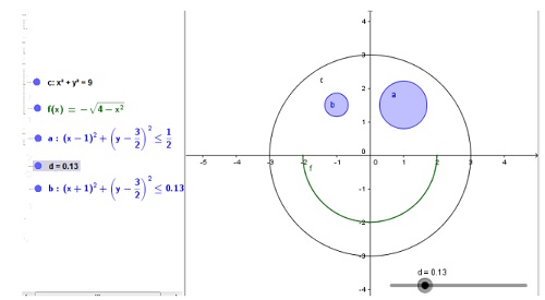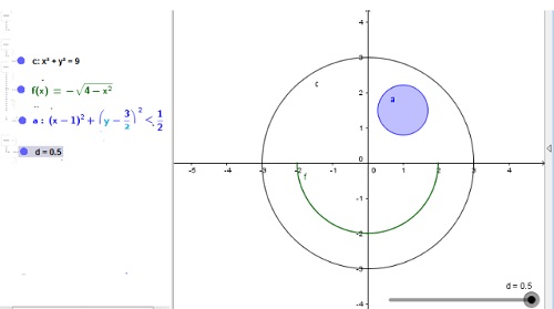 Uzupełniamy rysunku o suwak - narzędzie Geogeby, który spowoduje, że parametr d będzie przyjmował wartości np. z przedziału <0; 0,5> |