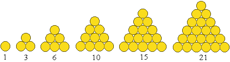 Liczba trójkątna to każda taka liczba o numerze n, będąca na przykład liczbą kół jednakowej wielkości, z których można ułożyć trójkąt równoboczny o boku zbudowanym z n kół. Graficznie liczby trójkątne można przedstawić następująco: