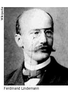 W 1882 roku niemiecki matematyk Ferdinand Lindemann udowodnił, że liczba jest liczbą przestępną, czyli że nie może być pierwiastkiem równania algebraicznego o współczynnikach całkowitych. Tym samym udowodnione zostało, że kwadratura koła, czyli konstrukcja kwadratu o polu równym polu danego koła, nie jest wykonalna za pomocą cyrkla i linijki. Wobec tego, że koło o promieniu równym jednostce długości ma pole , zagadnienie skonstruowania takiego kwadratu sprowadza się do skonstruowania odcinka o długości√ jako boku poszukiwanego kwadratu. Odcinek ten jest konstruowalny wtedy i tylko wtedy, gdy odcinek o długości jest konstruowalny. Dowód Lindemanna o niekonstruowalności kwadratury koła stanowi ostateczne rozwiązanie jednego z ciekawszych zagadnień matematycznych starożytności. |