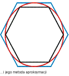 Aproksymacja to proces określania rozwiązań przybliżonych na podstawie rozwiązań znanych, które są bliskie rozwiązaniom dokładnym. Jeśli nieznany jest obwód koła, to w przybliżeniu można go ustalić, obliczając obwód wielokąta wpisanego w okręg i obwód wielokąta opisanego na tym samym okręgu. Obwód koła, równy 2 r, jest zawsze dłuższy niż obwód wielokąta wpisanego, a krótszy niż obwód wielokąta opisanego na tym okręgu. Metoda aproksymacji przez całe stulecia jej stosowania w starożytności i w średniowieczu doprowadziła do znacznego postępu w przybliżeniu wartości liczby . Dokładność oszacowania liczby zależna była od tego, z ilu boków składał się wielokąt wpisany i opisany na danym okręgu – im więcej wielokąt miał boków, tym dokładniejszy był pomiar, bo wtedy obwód wielokąta najbardziej pokrywał się z obwodem koła.